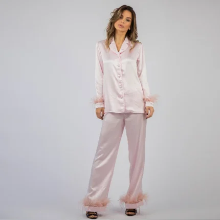 100% Svilena Baby Roze Pidžama sa Perjem