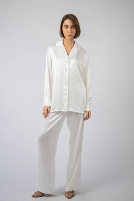 100% Svilena Bela Pidžama