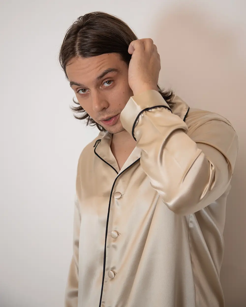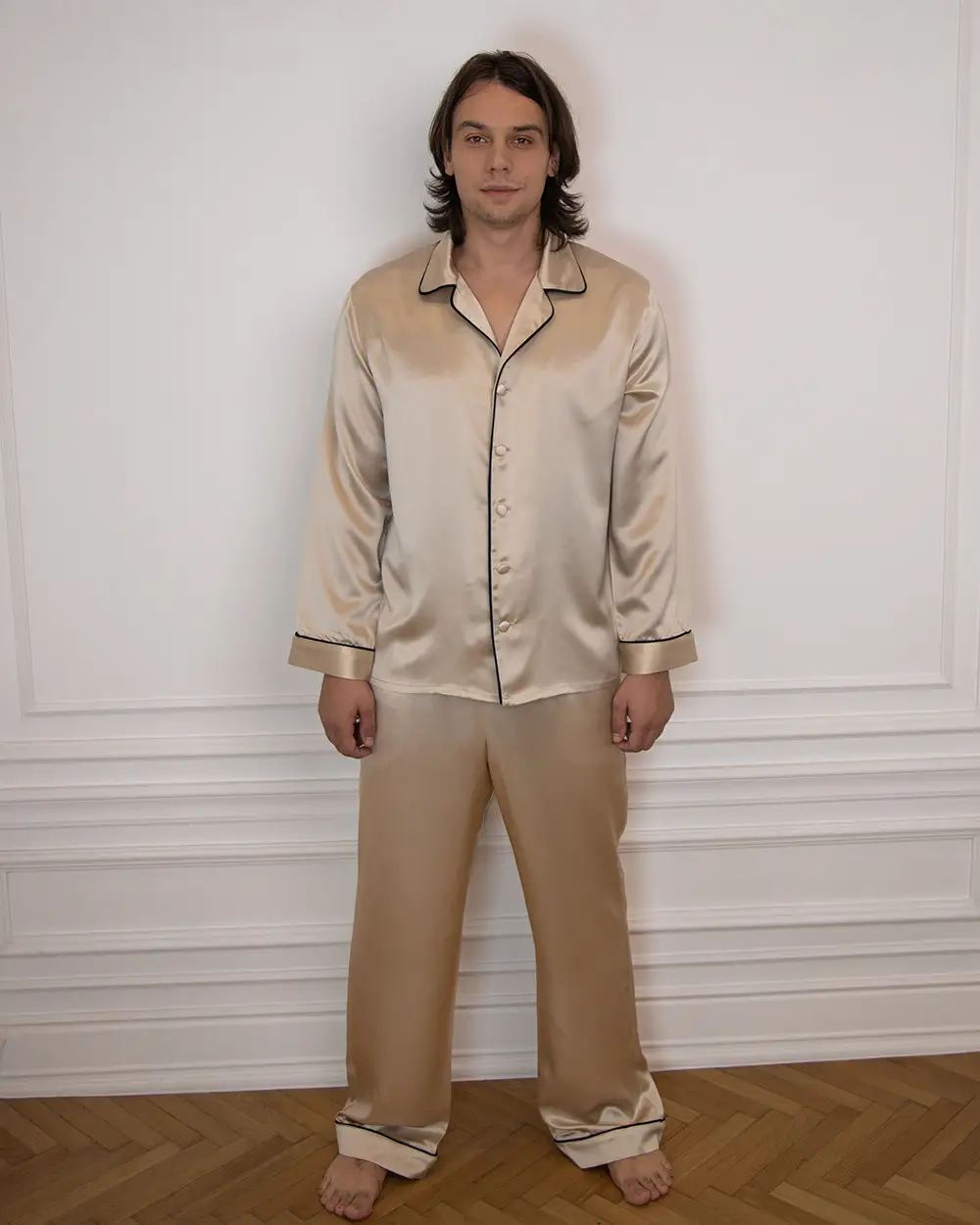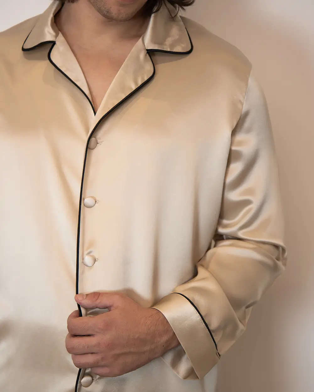 100% Svilena Muška Bež Pidžama
