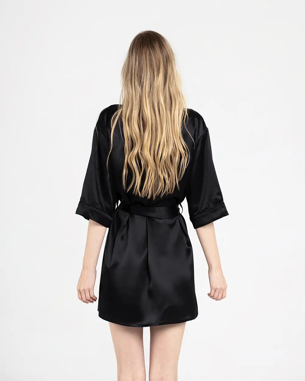 Silkeep svileni kimono je ručno izrađen od 100% mulberry svile, koja je OEKO TEX sertifikovana. Posebna pažnja posvećena je detaljima, a rubovi gornjeg dela učvršćeni paspulom. Mogu se nositi i kao spoljni odevni predmet.