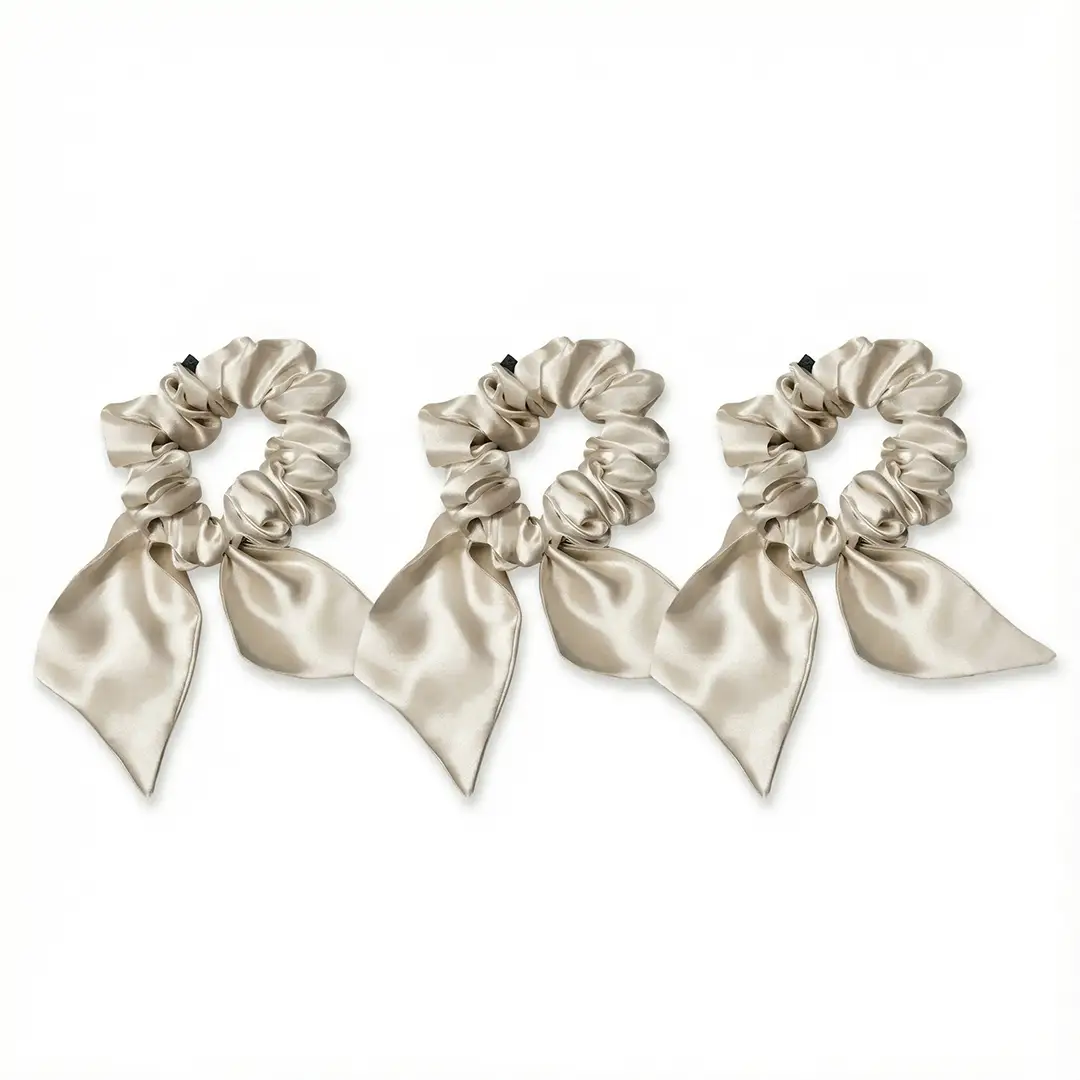 100% Svilene Bež Midi Gumice sa Mašnicom 3cm (3 kom)