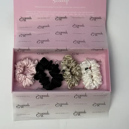 Korišćenjem Silkeep gumica vaša kosa se ne krza i ne lomi. Prirodni materijal prija regeneraciji kose, a luksuzni dizajn izgleda posebno i elegantno.
