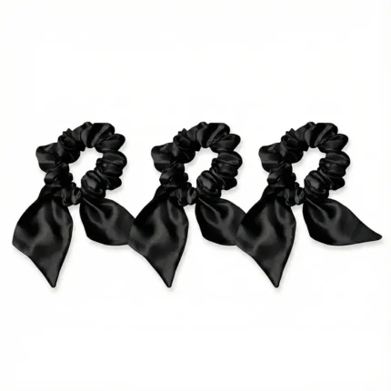 100% Svilene Crne Midi Gumice sa Mašnicom 3cm (3 kom)